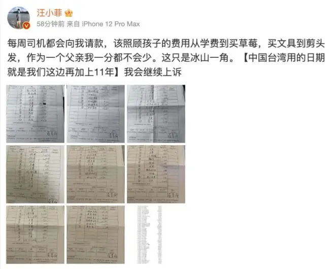 针对败诉,汪小菲昨日在微博发文强调会继续上诉,并公开司机每週给他的请款单,“该照顾的费用,从学费到买草莓,买文具到剪头髮,做为一个父亲,我一分都不会少,这只是冰山一角。我会继续上诉。”可以看到从2021年12月到2023年3月,家庭支出一共多达3000多万元。对此,大S透过经纪人向《NOWnews今日新闻》回应了,表示:“判决就是给他的回应。”另外,根据《自由时报》报导,S妈则表示:“日常费用是父母的事!我真的不了解,谢谢。”