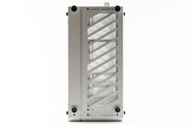 机箱的顶部也是通风结构与封闭式的双边铝板修饰,C34 PRO POLAR WHITE 极地白AIR版官方标配不含提手,不过对于经常要换地方的或者喜欢提手的也可以加装,全铝合金提手质感也非常不错