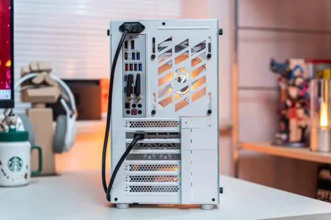 整机45°的后侧,内部的前置九州风神PX1000G-WH电源