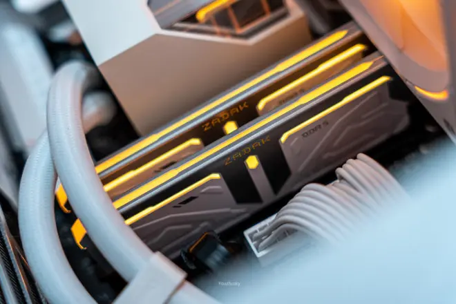 宇瞻ZADAK SPARK DDR5 6000内存套条,这个高度与两头的切角正好与水冷完美安装,不过前提是安装水冷的冷排前需要先安装好内存