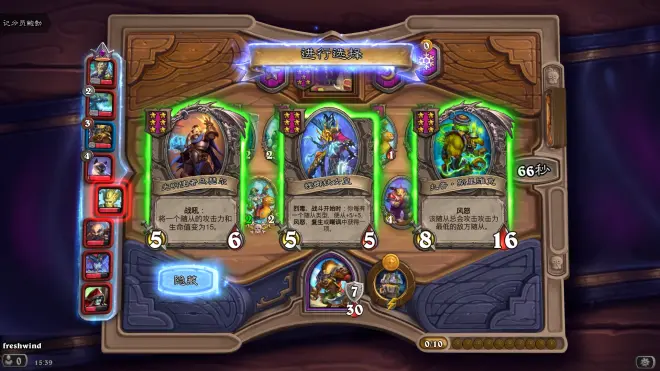 不过这一把清风还是靠着无面信徒硬是进化出了一个舰队上将,随后便搭配被动技能把电表转起来吃了鸡,场面上没有开挂荷官是因为前期实在是没找到,连上将也都没给一张,后来清风打刀油的时候,发现他场上有五六个金色的开挂荷官,不知道是不是全被他拿跑了。霍格船长目前的排名在第三梯队行列左右,属于还不错但是没有特别强的英雄,但不得不说,拿霍格船长把电表转起来还是挺爽的,电表倒转情怀玩家必选。顺带一提,清风之前用的拔线插件,在外服居然没有用,害得每回合少了很多操作时间。