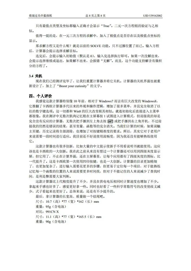 卡西欧fx-991CN CW新款计算器比较测评报告的评论 (共