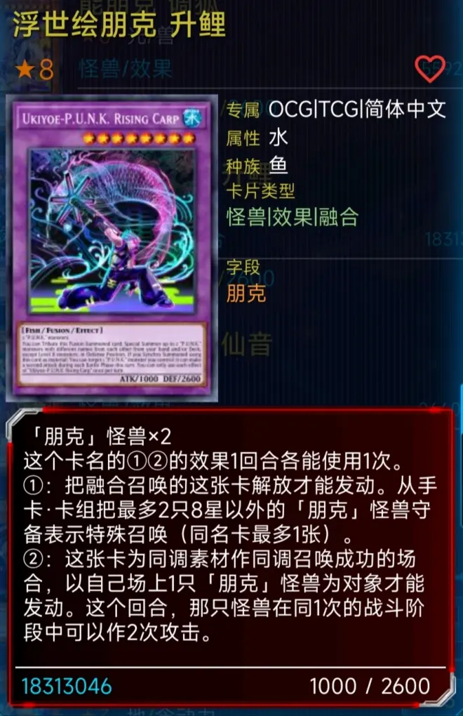 如果有同样体验过朋克黄金荣耀(下文简称pgp)这套卡组的小伙伴们,应该难免会有以下吐槽——pgp这卡组什么手坑都吃终场还不配赢。说到底,还是因为pgp卡组展开脆弱且终场都是干扰(破坏,除去,ntr装备)为主,没有硬康,吃雷击电爆一众解牌。 有意思的是,pgp这卡组,成也朋克,败也朋克:朋克固然让gp得以自由起跳,但同时也是gp展开脆弱的根源。而pgp展开脆弱的原因我认为可能很大程度来源于这张卡——浮世绘朋克•升鲤