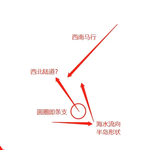 按照这张图展示的地形,如果条支位于也门,条支的“唯西北隅通陆道”势必与“西南马行,抵条支”相矛盾。因为西南行走之后,需要向东南方向拐一下,才能抵达条支。这注定了那座不知名的山城所在的只是个小半岛,西南马行是一个大方向。所以最后拐向东南、抵达山城那一小段路程足够短,可以忽略不计。 按照周楚山那套理论,条支不就成了“东北隅亦通陆道”了吗? 2.条支西北边是陆地还是海?