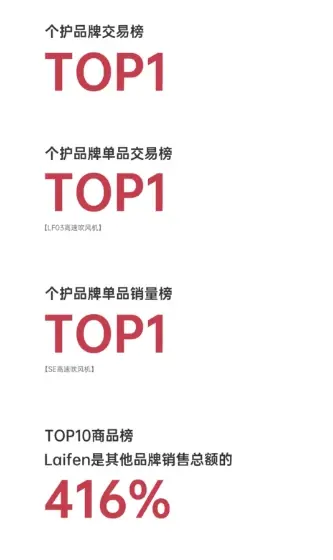 按照新鲜出炉的数据来看,徕芬在618期间全网销售额3.3亿元,全网销量60万台,也就意味着618期间,销冠依旧是徕芬的,甚至霸榜了京东前四,从电商数据来看徕芬守擂成功了,