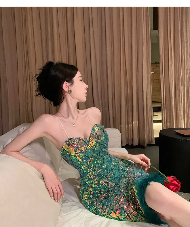 性感纯欲名媛风洋气减龄珠片包臀旅游聚会晚礼服网红直播连衣裙女