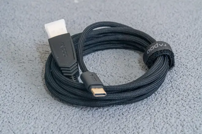 伞线兼顾充电和数据传输,在有线鼠标中伞线材质的使用感觉最接近无线鼠标。在之前另外一个老牌国产外设厂的伞线鼠标已经给我留下了深刻的印象,这次VT9同样搭配上了。
