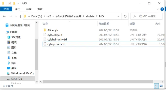 解压后abdata这个文件里有个叫MO的文件,我翻了一下游戏里没有这个文件夹,这个文件是放在chara的文件里吗