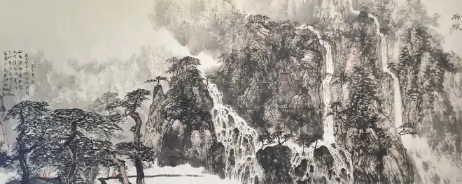 他创作的山水画《艰难的历程》是给我们留下最深刻印象的作品之一,浑厚的画面在黑白间叙说年代的艰辛,岁月的蹉跎、拙朴的钱条写出了远去的悲壮……这件作品让我感受到作者那燃烧的激情和无法掩饰的本真,恰似饮_杯浓浓的烈酒,至深至醇。他是当代创作型的画家,他真诚地面对自然,大胆的用笔、用墨,把感受到的素材以墨为主的大散花笔营造结构,体现大自然生生不息的大山大水,把自己的情怀融入一石一木。