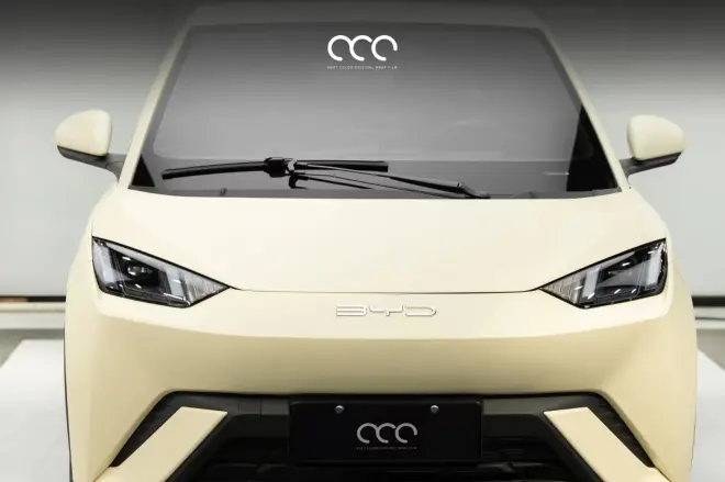» 特斯拉MODEL 3漫彩改色膜沙漠黄, 小姐姐们也都叫她奶茶色