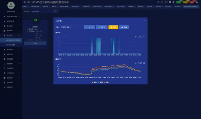 监测配电系统回路的漏电电流和线缆温度,实现对企业电气安全预警。