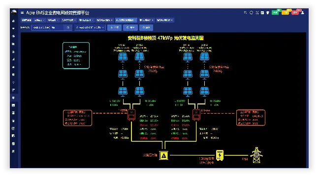 实时显示光伏电站一次接线图,光伏组串直流/交流侧实时数据