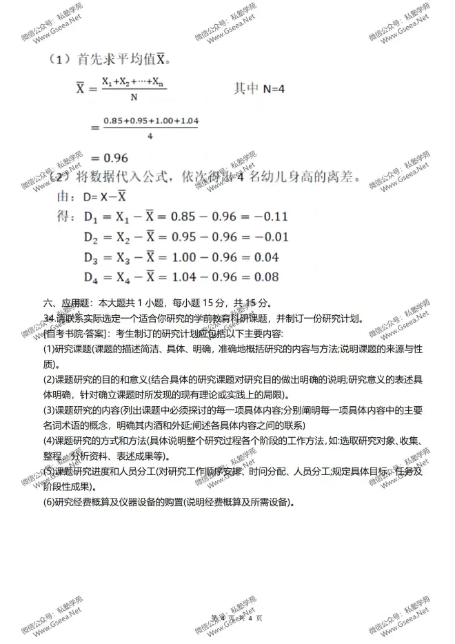 2022年10月自考《00389学前教育科学研究》真题和评分参考