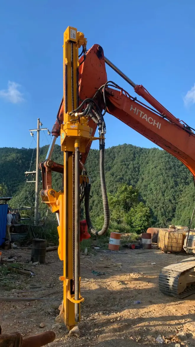 挖改潜孔钻机是我公司自主研发的一种新型高集成潜孔钻机,该设备是利用原挖机动力,在不破坏挖机原有工作性能条件下,加装液压阀组