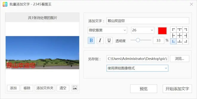 以上我们介绍了2345批量添加水印,批量添加文字,批量图片转正的功能。