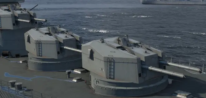 美国XI级重型巡洋舰安纳波利斯(Anapolis)采用与得梅因同款的主炮,区别在于安纳波利斯可以使用连续射击3轮的爆发射击。
