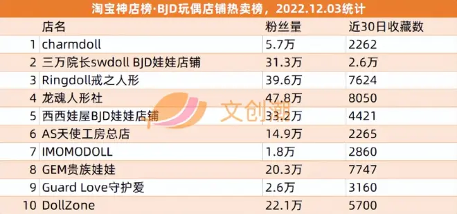 本周,在淘宝神店榜的BJD玩偶店铺热卖榜,排在前十的分别是: