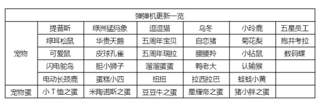 位于宠物训练室的弹弹机迎来更新!快来看看有没有喜欢的宠物吧!