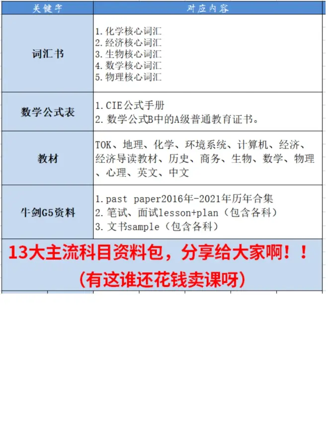 无论你是准备参加CAIE还是爱德思的考试,我为你准备了包括数学、物理、化学、生物、经济、进阶数学、商业、计算机、心理、文学、历史、地理和会计在内的13大主流科目的备考资料,让你备考更加轻松高效!