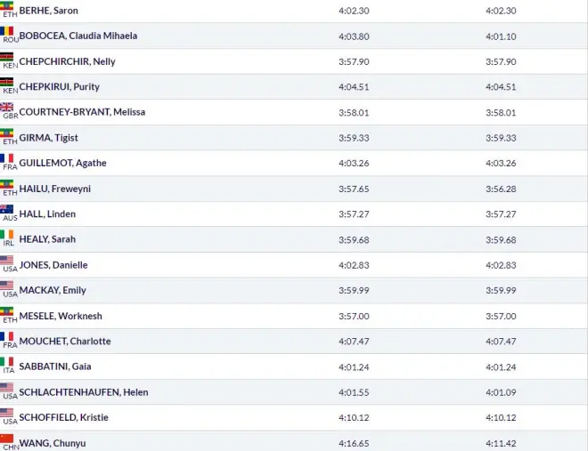 女子1500米:世锦赛第五名切普奇奇尔 、世锦赛5000米第七名海鲁、王春雨等