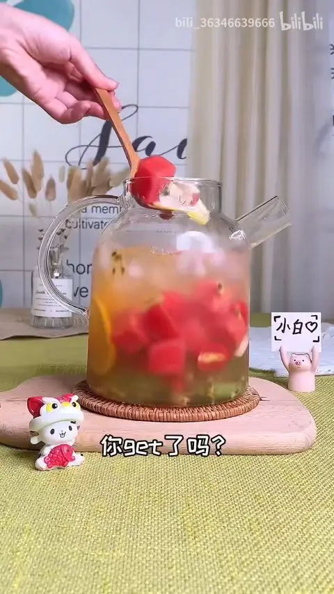 西瓜,蜜桃,奇异果,小番茄,橙子,柠檬,百香果,茶Π