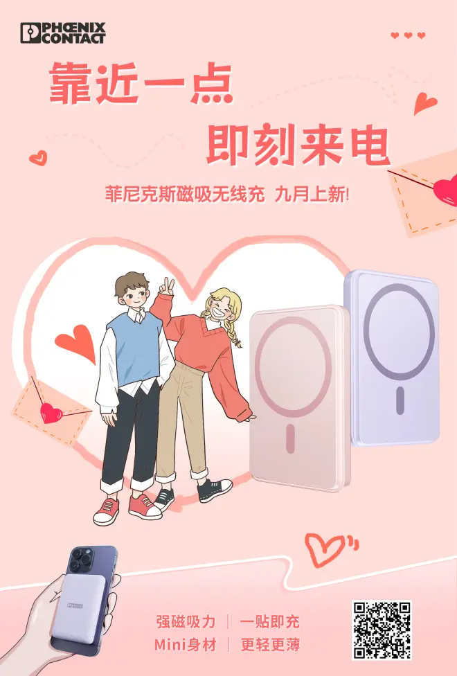 这个七夕,靠近一点,让你们的爱情即刻来电!菲尼克斯九月将上市新品磁吸充电宝,让你们的手机电量满满,不再错过任何一个重要时刻。九月,记得与心爱的人一起购买,让你们的爱情更加甜蜜哟!