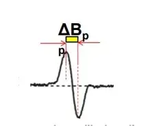 如图3所示,一个峰的最高点与最低点之间的距离记作∆H或∆B,两者之间相差的距离就是谱图的线宽,单位一般是高斯(G)或mT。