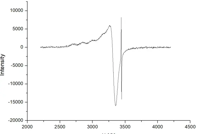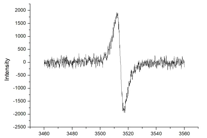 EPR谱图由横纵坐标组成(如图1所示),其中,横坐标有2种表达方式,磁场强度和g因子。