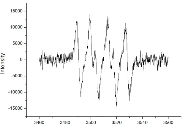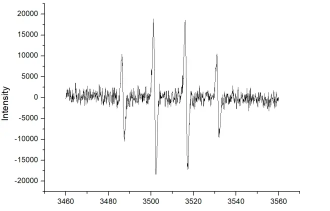 如图5所示,羟基自由基简称OH,有4个峰,从左往右,峰的比例依次是1:2:2:1。