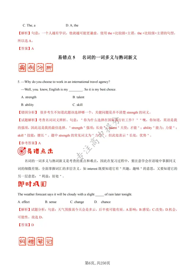 因为高考英语试卷有自己独特的知识点,对于一些细心的同学不难发现,有些知识点和单词是反复出现的,这些因为容易出现记忆混淆,所以出卷老师偏爱出题用来考查那些基础不是十分好的同学!