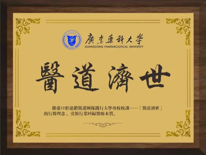 大學在我們入學之初就通過校訓,教導我們「但願世間人無病,何惜架上藥生塵」的思想。醫學技術之上,是醫德。這十五年來,我們用心做好口腔科醫療服務的同時,時常與醫護同事回顧交流大學所學專業,也將大學校訓牌匾擺放在門診顯眼的位置,始終提醒每一位醫務工作人員,我們所踐行的醫療本質傳承自我們的大學,它告誡了我們作為醫護人員要堅持的根本問題。