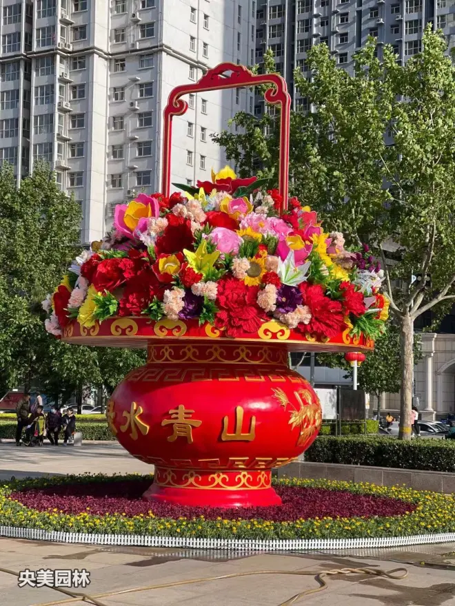 国庆大花篮雕塑是一种更具艺术性和规模较大的装饰物,以下是一般的制作和定制生产流程: