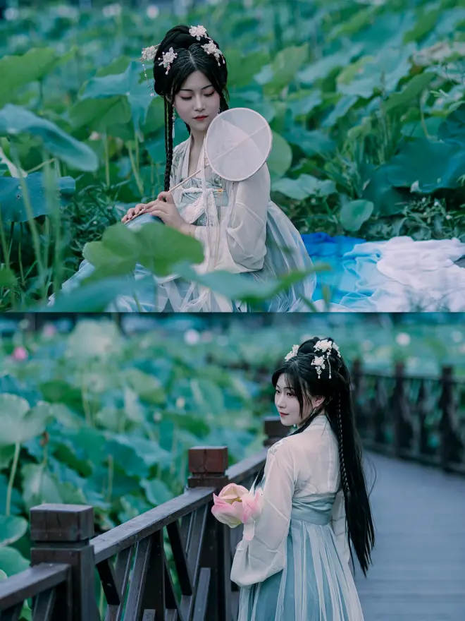 新津千亩荷塘,汉服人像摄影