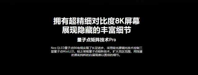 以三星85英寸级Neo QLED 8K QN900C为例,该电视搭载了一块8K分辨率(3300万像素)、120Hz刷新率、采用Neo QLED量子点技术的屏幕,自然在色彩丰富程度上有天然的优势,可针对焦点区域提高与背景的对比度,并将调光精度提升为14bit。