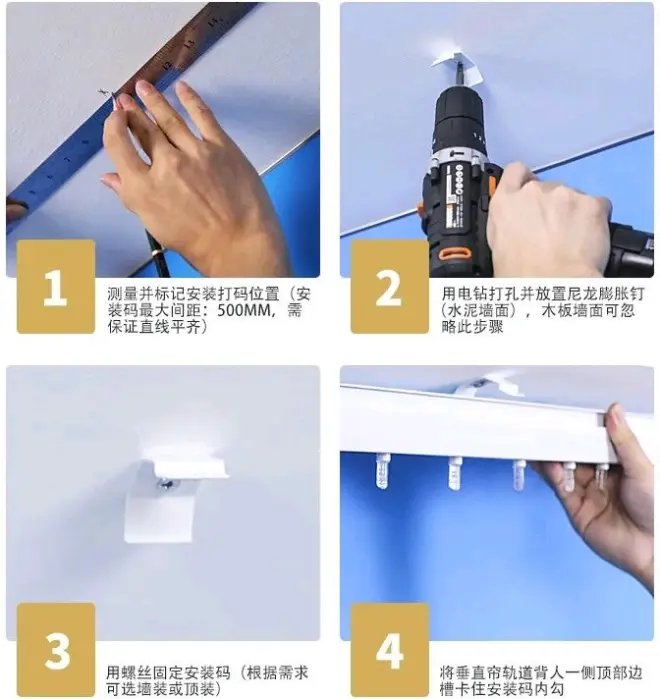 先测量定位、安装轨道、再一条条往上挂