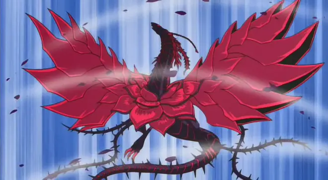「黑蔷薇龙」是动画《游戏王5D’s》的龙印者之一的十六夜秋所使用的王牌同调怪兽,是龙印者之龙。原本是和「星尘龙」「红莲魔龙」「古代妖精龙」一起被用于封印旧永动机的控制装置的卡片之一。在哥德温将其公布于世之后传到了秋的手中。