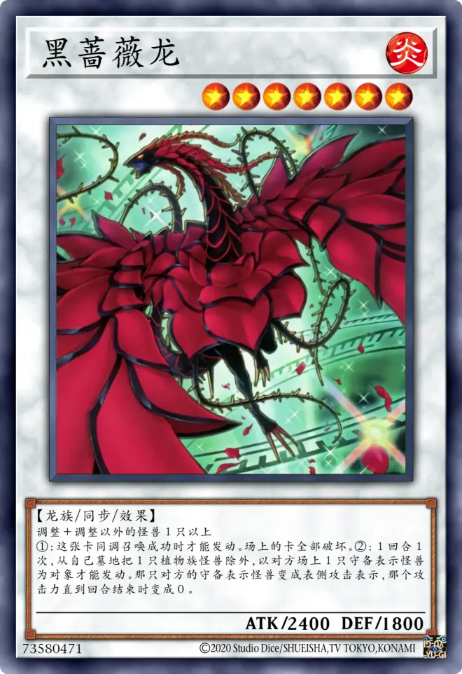 把「赤蔷薇龙」作为同调素材特召「黑蔷薇龙」,可以再特召「青蔷薇龙」。而「青蔷薇龙」的1效可以从墓地拉出「黑蔷薇龙」。「白蔷薇龙」的2效也能从墓地拉出「黑蔷薇龙」,3效还能堆墓,让「黑蔷薇龙」可以发动2效。「交错蔷薇龙」可以实现从额外特召「黑蔷薇龙」⇒炸场⇒苏生「黑蔷薇龙」的COMBO。