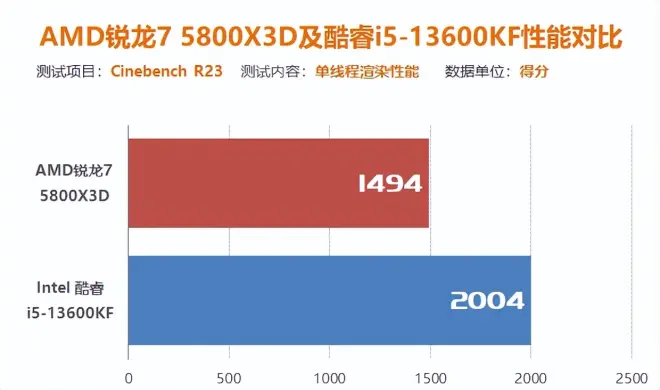 当然,以上只是游戏性能的总结,而在生产力测试中,核心数量及频率吃亏的锐龙7 5800X3D处理器不出意料的输给了酷睿i5-13600KF。