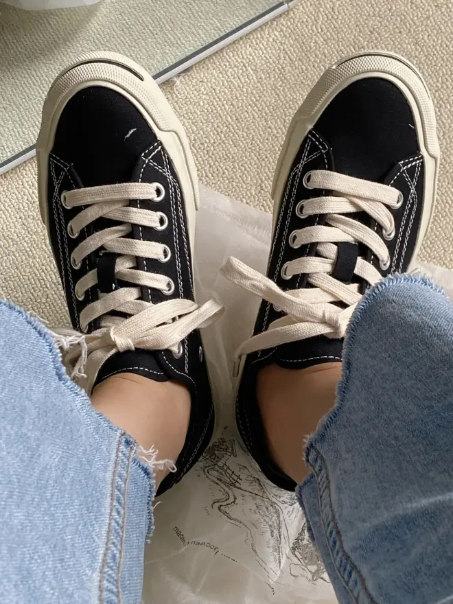 小众平价国货是真香!!黑色开口笑帆布鞋!