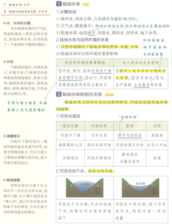 高中地理选择性必修一 4.1 陆地水体及其相互关系