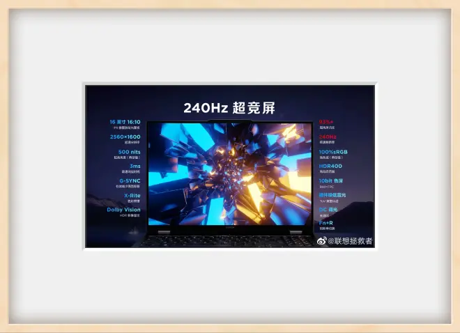 屏幕方面,新款拯救者 Y9000P 和 Y9000P 至尊版搭载 16 英寸 2.5K 240Hz 规格屏幕,500 尼特亮度,10bit 色深,100% sRGB 色域,3ms 响应时间。