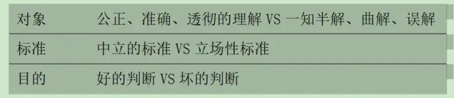 针对对象,理解的宽容原则。以合理性的最大限度理解所批判的对象——尽量避免误解、曲解、一知半解等等。理解方面出现问题,会严重影响批判的质量。
