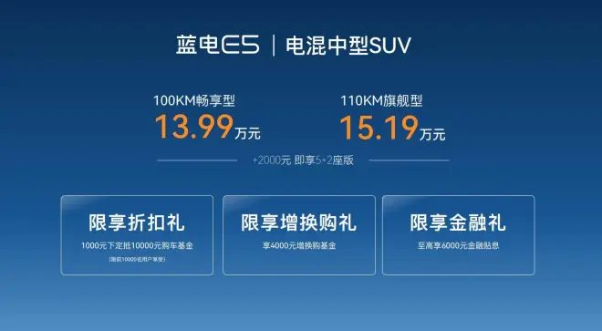 油车价格,13万元级纯电续航百公里的电混中型SUV,蓝电E5