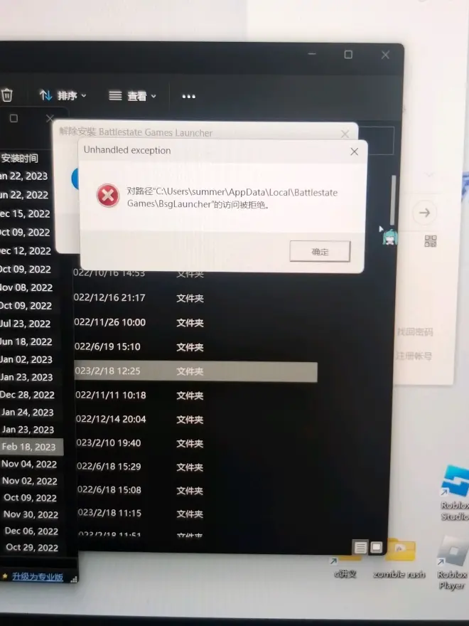 该问题出现是在稀少,但是我还是自己找出了解决方法 如果这样报错,在c:\users\summer\appdata\loacl目录下大概率是没有Battlestate Games这个文件夹,自行创立后点击属性,将已读选项去掉,并且给everyone全部权限,大概率就能解决这个问题,如果不能,再进行一次启动器安装来观察