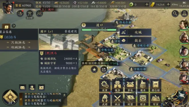 3、步坦协同战术的变种应用,所谓步坦协同战术,是现代战争的一个术语,指的是利用步兵帮助坦克清除攻击死角的威胁,更好的保护坦克进行推进。在《三国:NSLG》中,同样也可以应用这样的思路,待己方攻城/守城器械与敌军交战时,组织精锐兵力进行协同作战,可以更加有效的击溃对手,同时也能保护己方建筑,延长其使用寿命,最大程度的发挥建筑的价值。