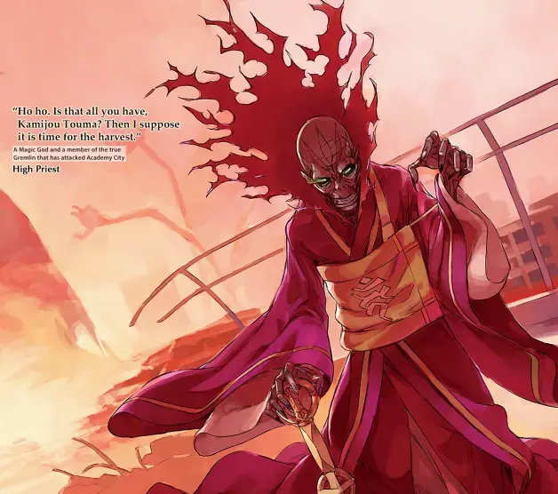 下一击魔法被右方之火的一道防御术式隔开,一方通行趁机冲了上去扯断了僧正的一条臂膀。