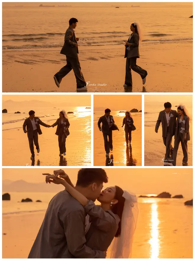 夕阳海景婚纱照:搭配EXO歌曲Beautiful,陷入落日弥漫的橘,在海边肆意奔跑,夕阳相伴,你是如此美丽迷人
