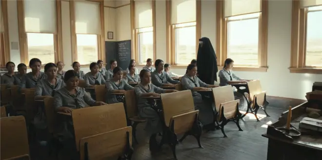 在剧中我们可以看到,仅仅是因为说不出肥皂的成分、扫地的动作不正确、说自己本民族的语言,未成年的印第安女孩便要遭受一遍遍的毒打。而剧中的这个女孩还是幸运的,至少她还能活着逃走,更多的印第安少年则在一次次“驯化”中殒命。