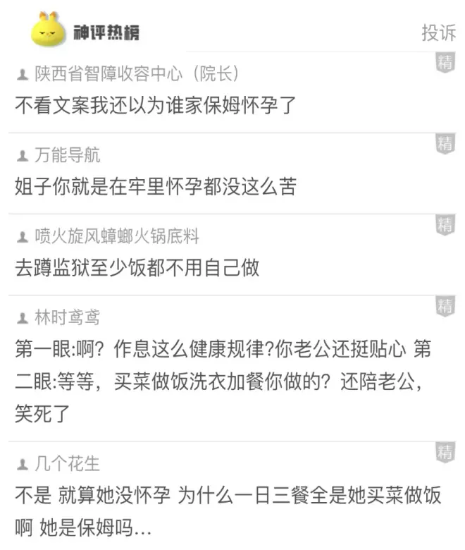 网友纷纷吐槽:“不看文案还以为谁家保姆怀孕了”“就是在牢里怀孕都没这么辛苦”。