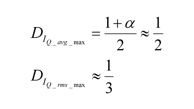 开关管电流平均值IQ_avg定义为电感电流直流分量Idc乘以占空比;开关管电流有效值IQ_rms定义为开关管电流波形的均方根。通过数学手段消去Vin得:
